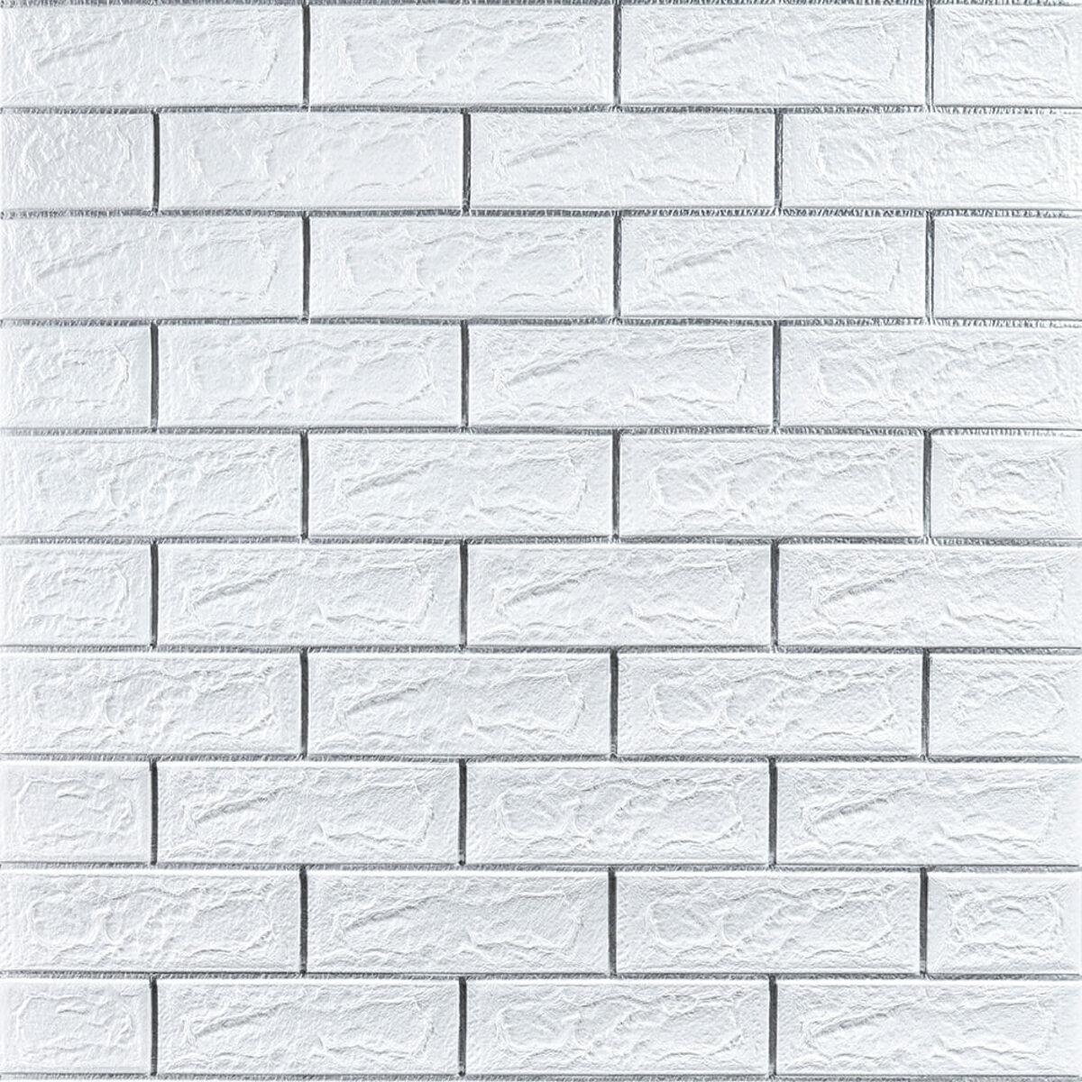 Самоклеюча 3D панель цегла біла смужка срібло 700х770х5мм (100-5) SW-00000753