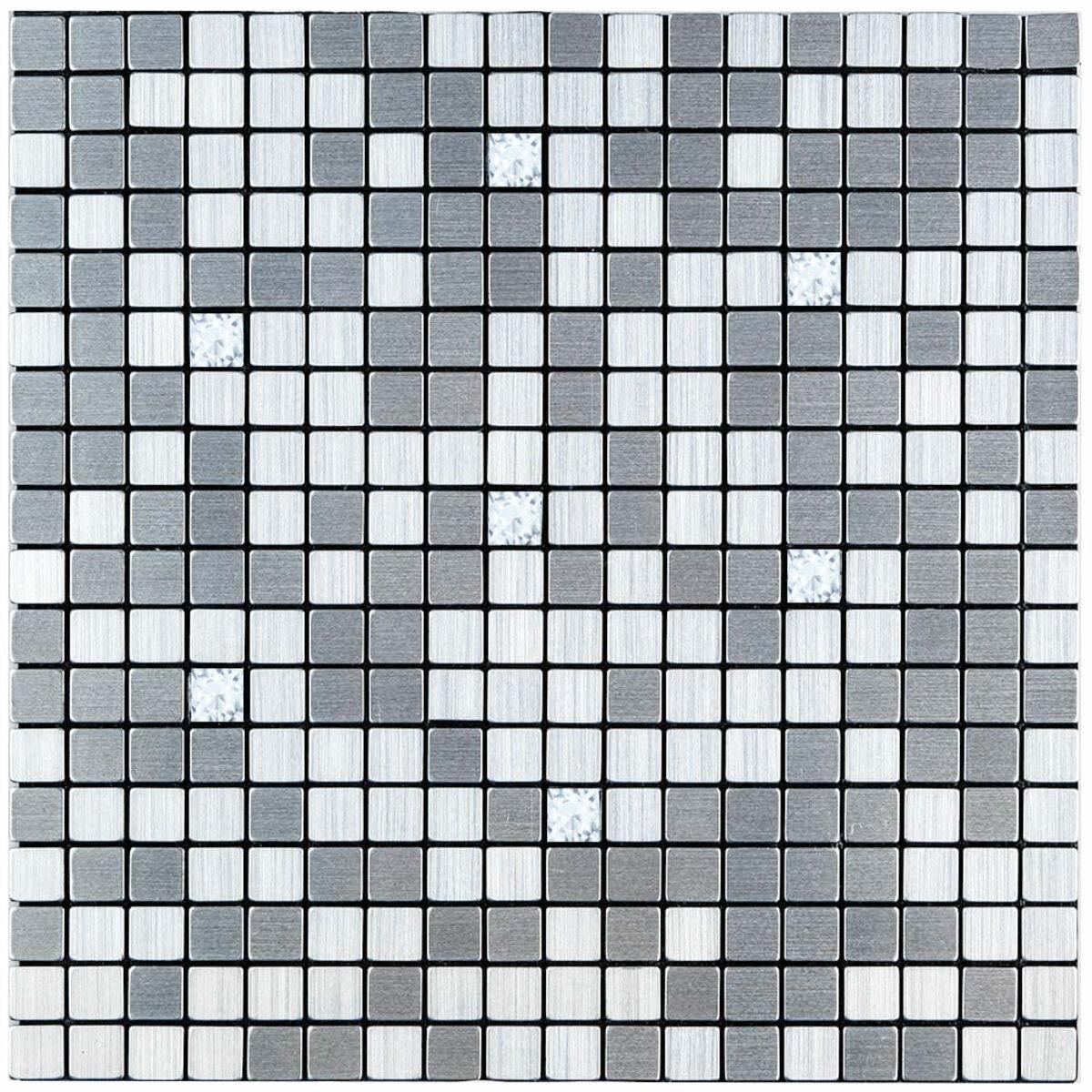 Самоклеюча алюмінієва плитка срібна мозаїка зі стразами 300х300х3мм SW-00001824 (D)